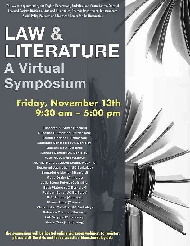 Co-sponsored by: English Department; Berkeley Law, Center for the Study of Law and Society; Division of Arts and Humanities; Rhetoric Department; Jurisprudence Social Policy Program; Townsend Center for the Humanities